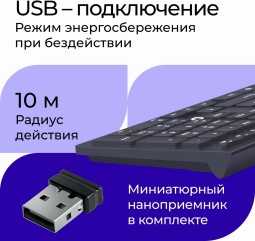 | Комплектация | USB-ресивер, клавиатура, документация |