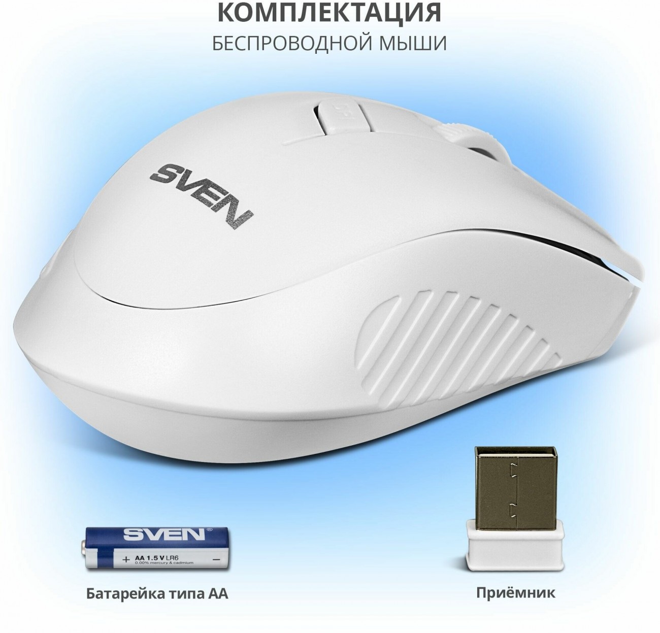 | Комплектация | - оптическая мышь — 1 шт.; - 2,4 ГГц USB-наноприемник — 1 шт.; - батарейка типа АА — 1 шт.; - руководство пользователя — 1 шт.; - гарантийный талон — 1 шт. |