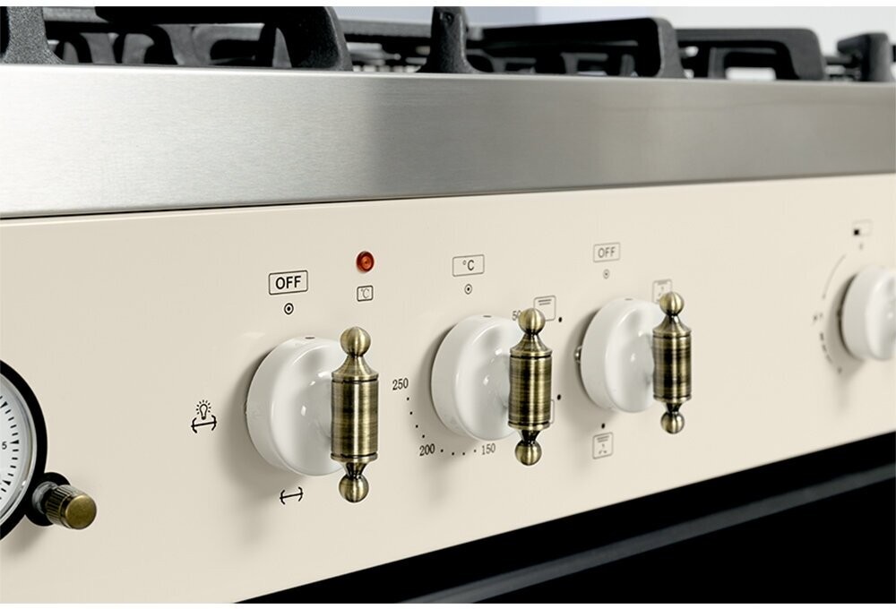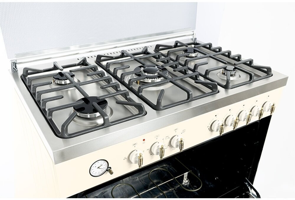| Особенности конструкции | вертел, подсветка духовки, часы, чугунные решетки, ящик для посуды, аналоговые часы с таймером, кольцевой нагревательный элемент в духовке |