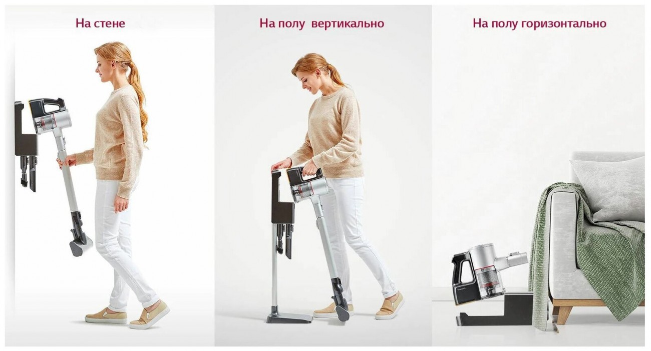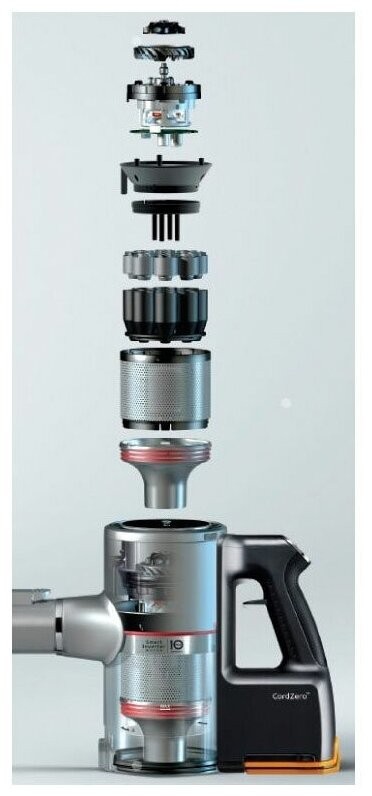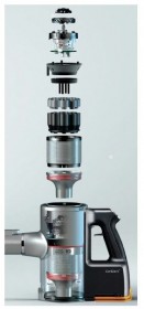| Дополнительная информация | 3 опции размещения зарядной базы; 4 степени регулировки ручки; съемные моющиеся фильтры; инверторный мотор; технология против запутывания волос, шерсти; мощность всасывания в режиме турбо 160 Вт, в усиленном режиме 80 Вт, в обычном режиме 23Вт; время работы от аккумулятора: в обычном режиме - 50 мин., в обычном режиме + насадка - 40 мин., в турбо-режиме + насадка - 6 мин |
