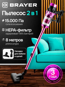 Пылесос ручной BRAYER BR4272 розовый [600w /185w]